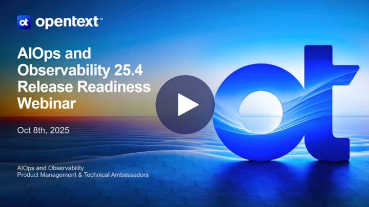 Watch this recorded webinar for an overview of the latest features and capabilities in three OpenText™ AIOps and observability products—OpenText Core Application Observability, OpenText Core Infrastructure Observability, and OpenText AI Operations Management.