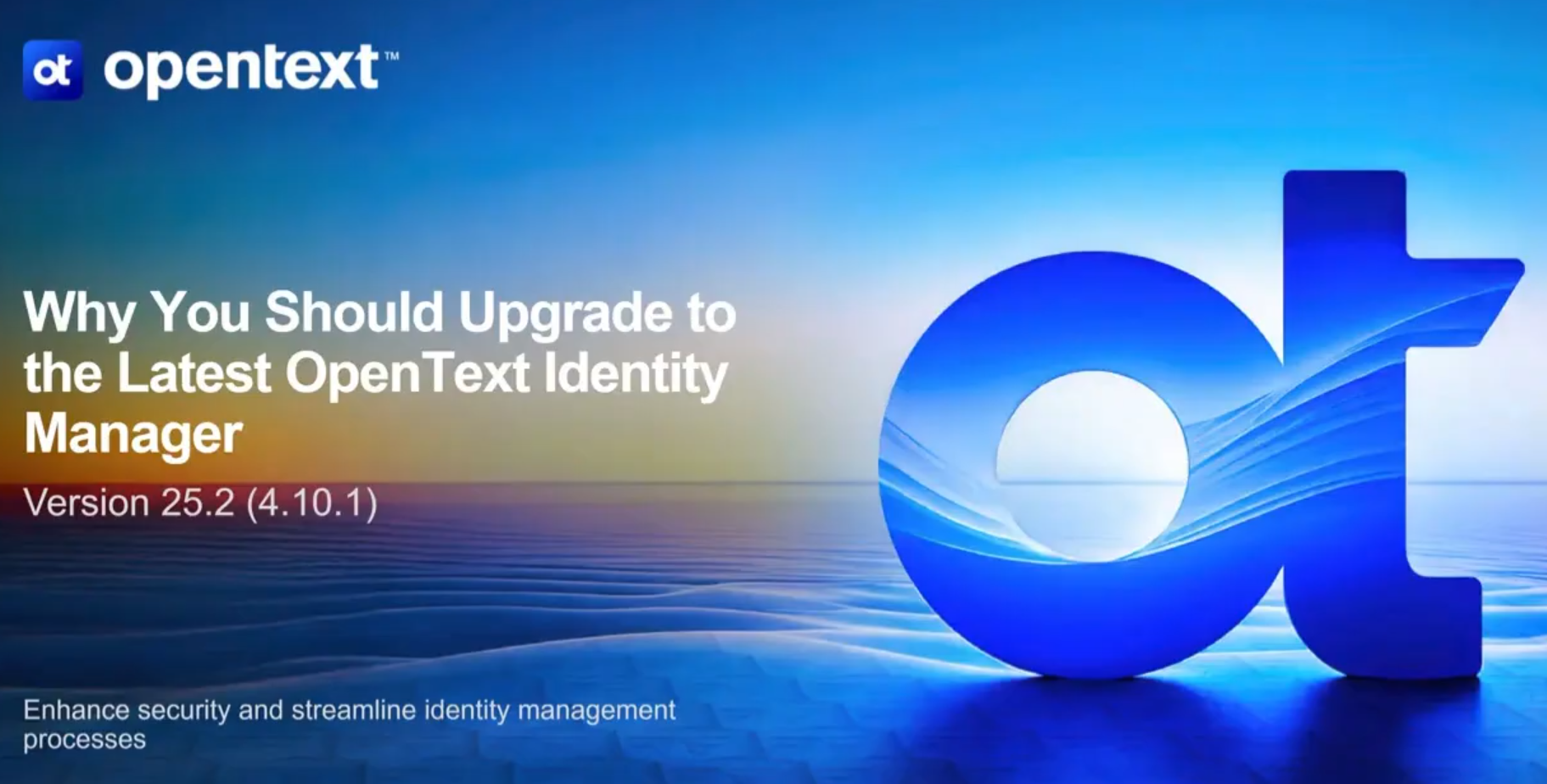 Enhance your identity management, user monitoring, security, and compliance with the latest version of OpenText™ Identity Manager. Upgrade your Identity Manager to enhance your identity management experience and security. Staying updated is crucial for maximizing the benefits of our latest features and achieving operational excellence within your company.